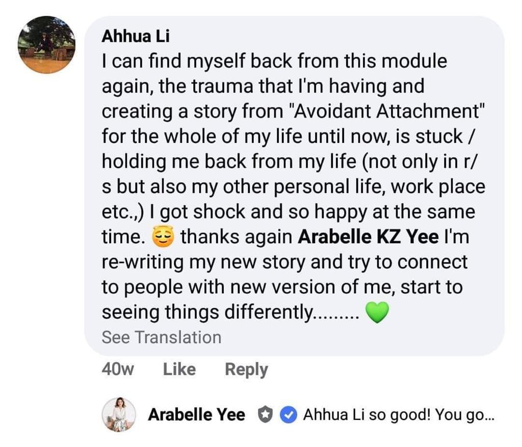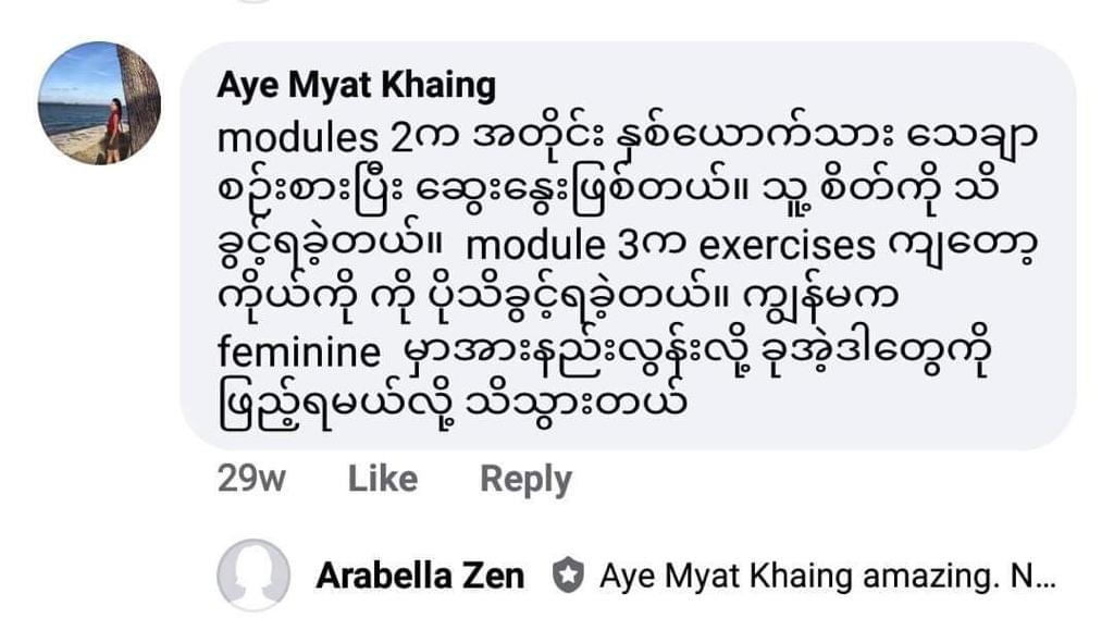 Now, let’s clear the air. ဒီ Relationship Mastery Program က ဒါပြီးရင် ဒါလုပ်ဆိုတဲ့ ရှေးရိုးဆွဲ cookie-cutter course တွေလို same old advice တွေပဲပြောတဲ့ program မဟုတ်ဘူး။ အရေးပါအရာရောက်တဲ့ relationship မျိုးကို​ အစပြုပေးမယ့် ပြောင်းလဲစေနိုင်တဲ့ holistic journey တစ်ခုဖြစ်တယ် - ကိုယ်နဲ့ ကိုယ်ကိုယ်တိုင်ကြားက relationship လိုမျိုးပေါ့။ ဒါကို သေချာပဲ့ကိုင်နိုင်မယ် ဆိုရင် romantic relationship ပဲဖြစ်ဖြစ်၊ platonic relationship ပဲဖြစ်ဖြစ် or somewhere delightfully in-between ပဲဖြစ်ဖြစ် လေးနက်ပြီး enrich ဖြစ်တဲ့ bond တွေကို အလွယ်တကူ ရှာဖွေနိုင်လေပဲ ဖြစ်တယ်။
